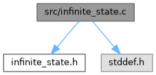 The infinite_state_topology() function performs a depth-limited upward traversal of the state hierarchy, collecting unique super-states (including the starting state) into the supplied topology array. The function returns a pointer to the next free slot after the last written state. Duplicate suppression (to avoid loops) is compiled in only when DEBUG is defined.